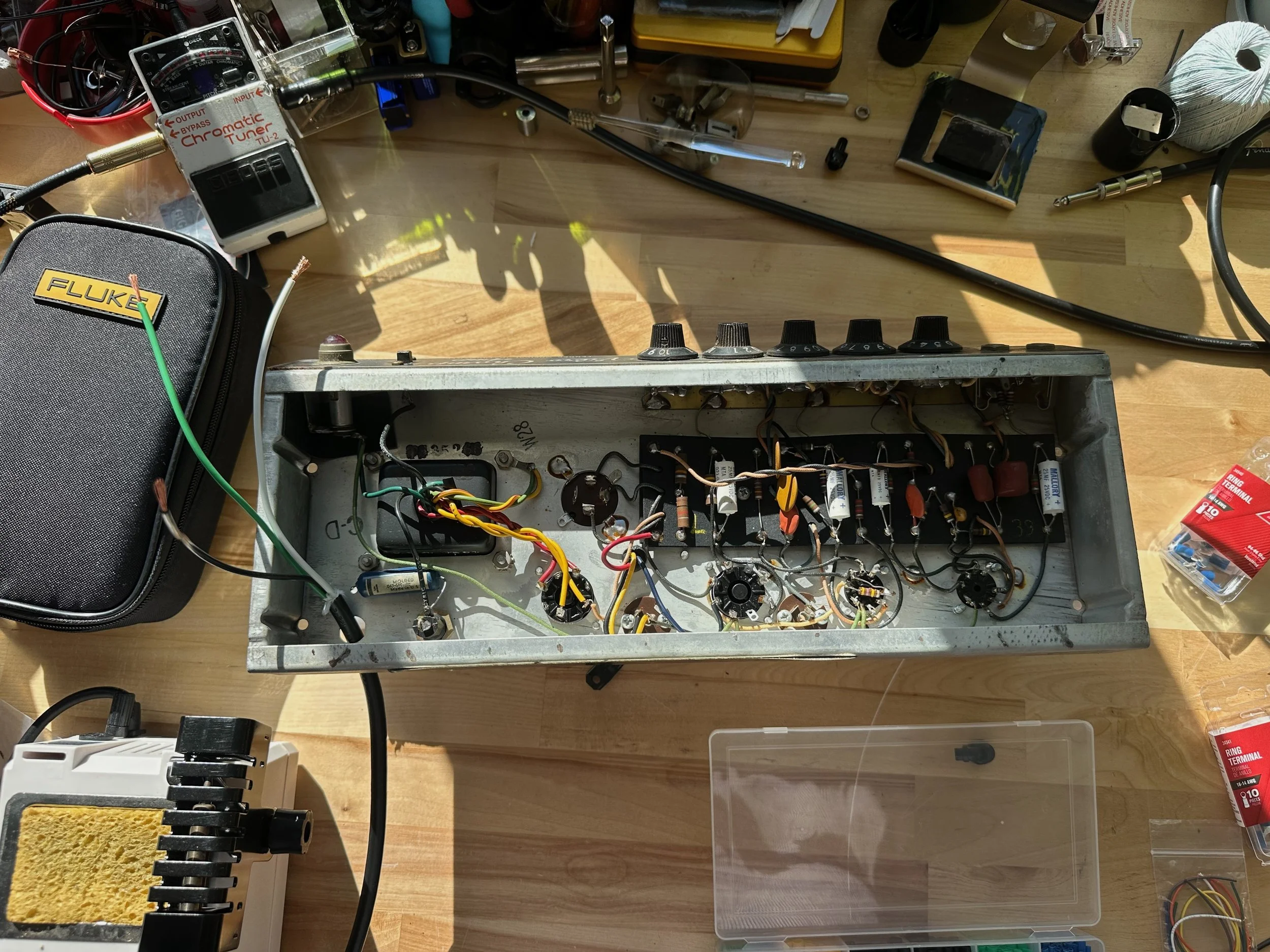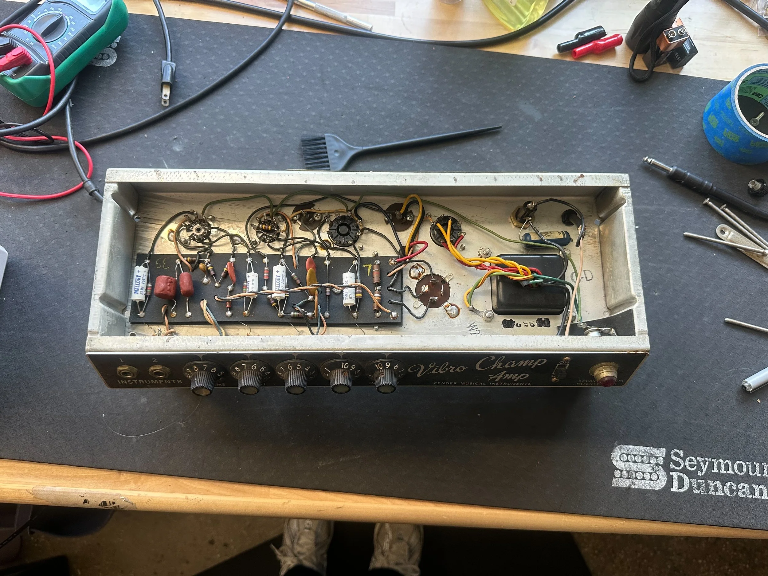 Black panel CBS-era tube amp (manufactured between 1964 to 1967). This amp was in working condition but required death cap removal and 3 prong conversion.